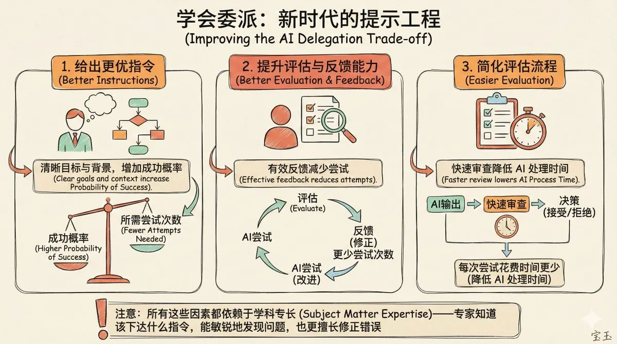 For example: a task takes you 1 hour, AI produces results in minutes, but reviewing takes 30 minutes. Delegation only pays off when AI’s success rate is very high. Otherwise, generation plus review takes longer than doing it yourself.