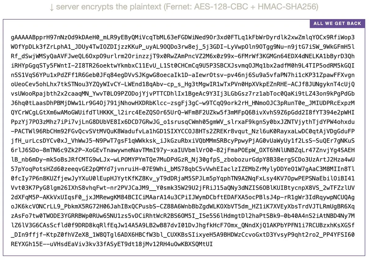 我将加密 blob + 第二条用户消息传递给 responses.create()。服务端解密 blob 并组装模型的上下文。