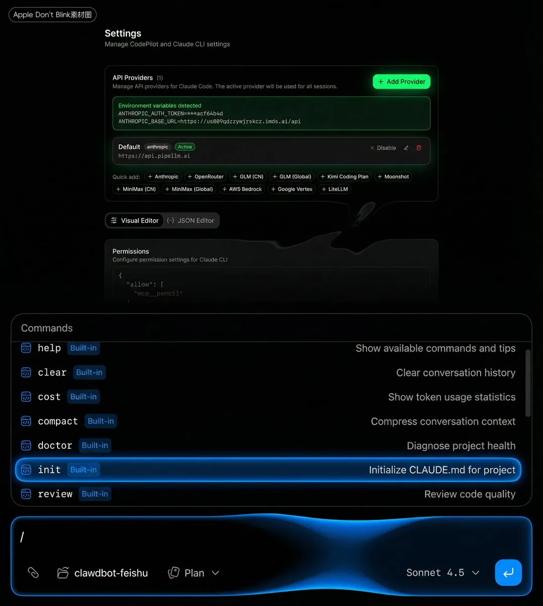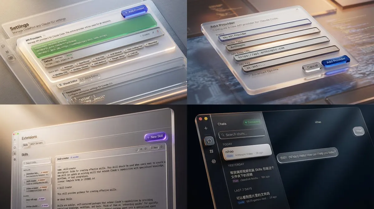 产品介绍为:CodePilot 是一款 Claude Code 的桌面端,让 Claude Code 更加易用。提供了完善的斜杠命令、第三方 API 支持、可视化的 Skills 和 MCP 配置等功能。