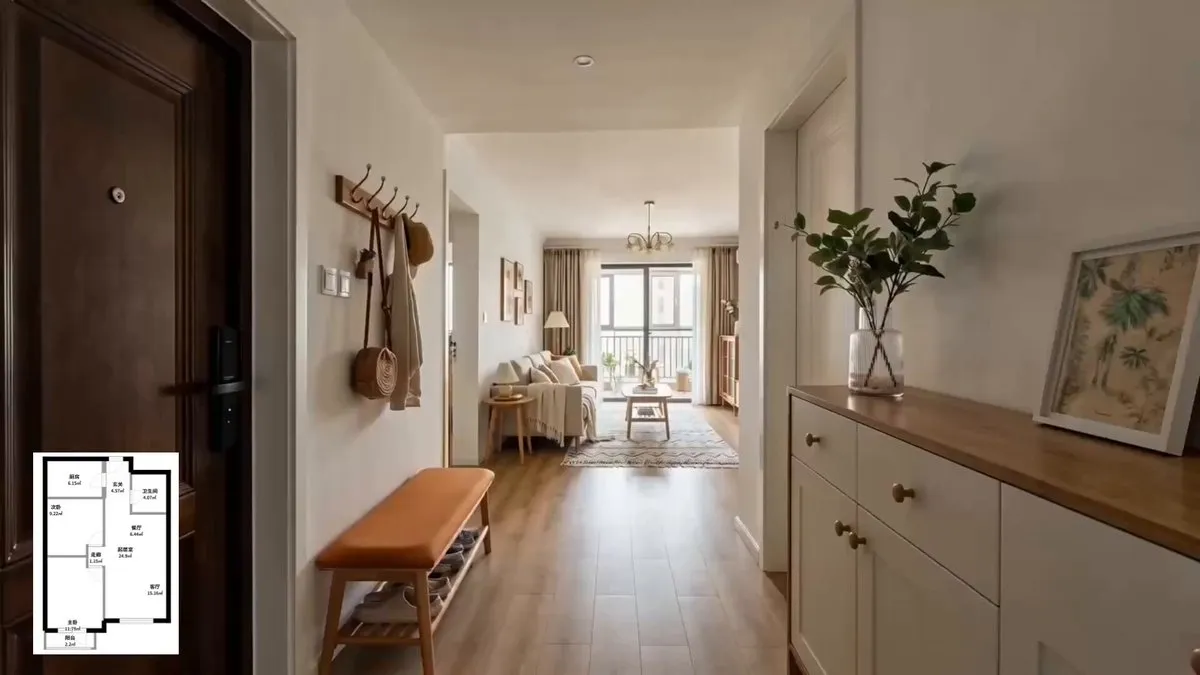 我直接尝试用只用一张户型图,生成了一段沉浸式的样板间参观视频。