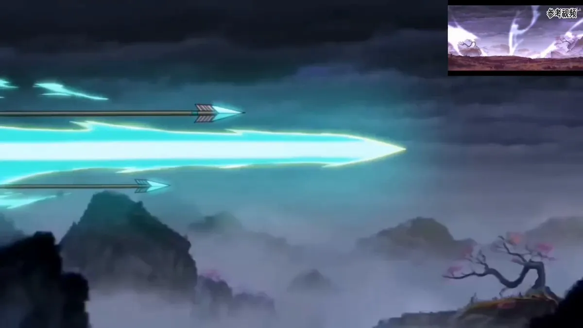 提示词: 帮我根据下面的小说剧情要求生成动漫,将画风动作打斗表现严格对齐 @视频1 的风格。 剧情要求为: 第三支箭离开大瑶山。一粒光点从本尊身上跃出,附着于「桃都」之上,以剑遁之术破空飞遁。第三支箭瞬息即至烂桃山。 道士屈指一弹,弹出两道蝌蚪光点,一黑一白,两者交织飞旋,化作一个太极图,太极图外再生八卦,化作一个八角八卦镜框的圆心铜镜。仙镜飞出烂桃山,迸发神光,拦在巨箭之前。 箭锋顿时停滞。 但见这支神箭止住之后,在那团浓郁的幽碧色飞虹尾迹中,还有一支箭!第四支箭藏在了第三支箭的飞虹尾迹中….