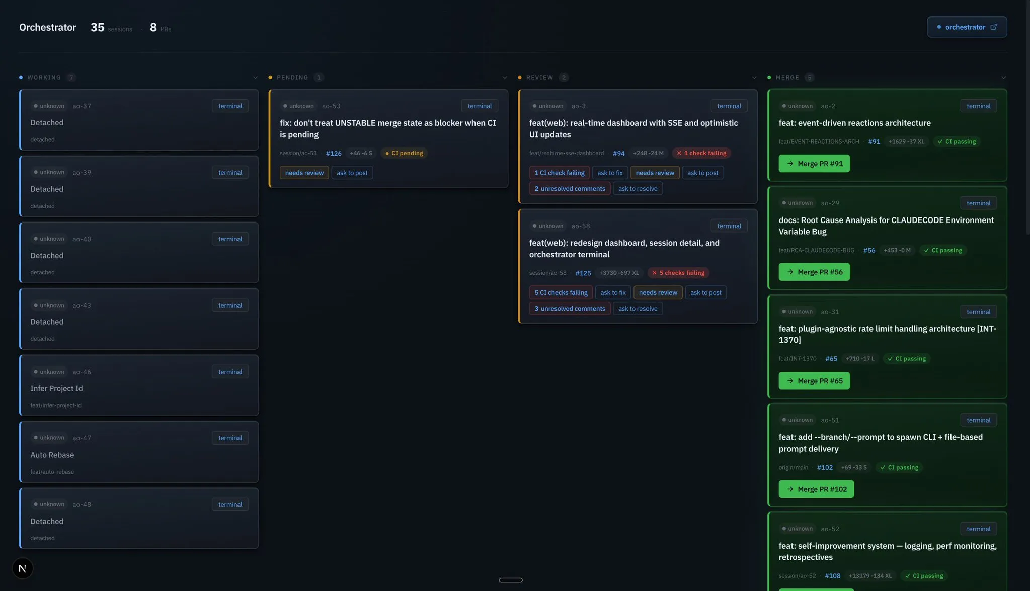 你打开 dashboard 查看状态,但编排 agent 已经在工作了——它扫完了你所有的工作流,然后告诉你:“这个 PR 正在阻塞另外三个任务,这个 CI 失败是个 flaky test,这条审查意见才是真正需要处理的。“它不是在展示数据,而是在给你决策结论。